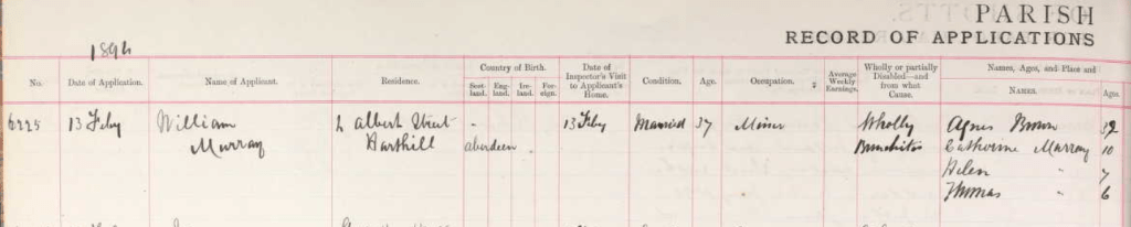 Then in 1897 William was sent, by train, back to Aberdeen! He was no longer able to work due to his asthma and because he was born in Aberdeen and he needed to be cared for by the workhouse so he would go back to the parish he was born in, Aberdeen.