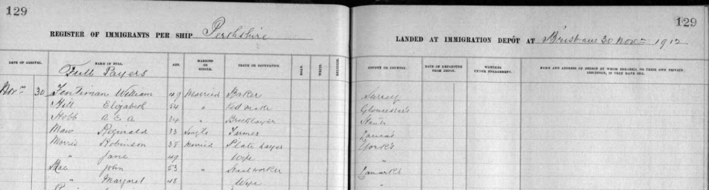 The following year John boards the Perthshire (pictured below) on 28th September 1912. Destination Brisbane, Australia. Margaret and John did not emigrate under any of the work/government scheme, they pay the full fare. I believe it would have been due to their age they wouldn’t be eligible.