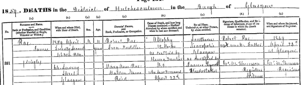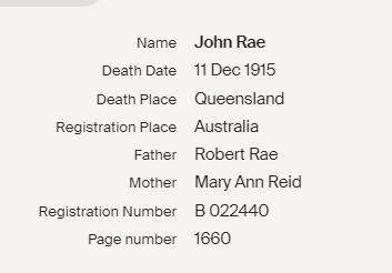 Sadly the last record I have for John Rae is only 3 years later. He took his family to Australia for a better life, but sadly he didn’t get to enjoy watching them grow.