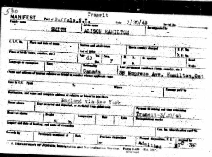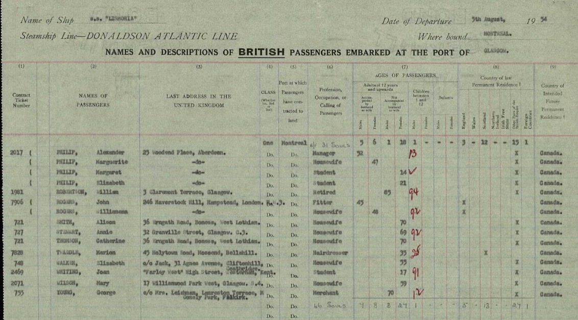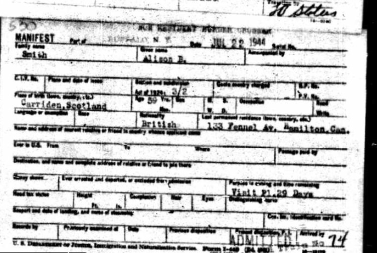 This picture has Janet Ferguson with her sister Alison and, I think, her other sister Marion (I have no other picture of Marion to compare to). I also believe the photo was taken in Canada. The records above show that Alison travelled back to the UK on numerous occasions so it make sense that Janet visited Canada with her Sister Marion as Marion’s son emigrated and married in Canada.