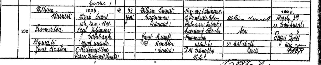 This is a picture of her brother William Burnett with his own family. He married Janet Houston He lived his live in Boness.