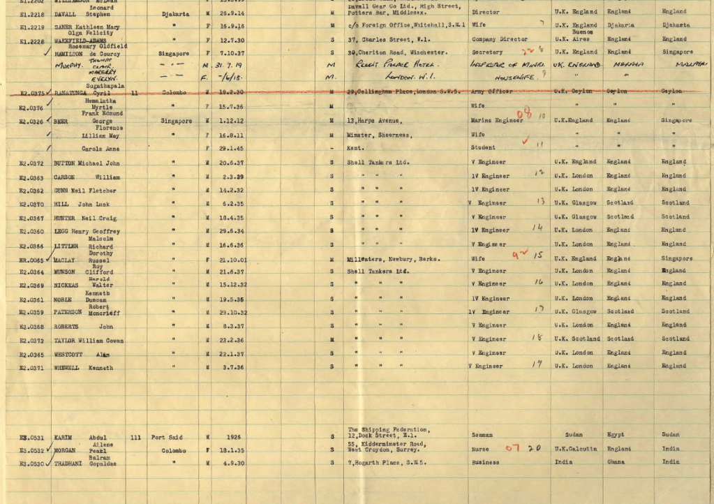 Marion’s husband was an engineer for Shell and travelled the world! Below is a passenger list of him travelling to Singapore with work