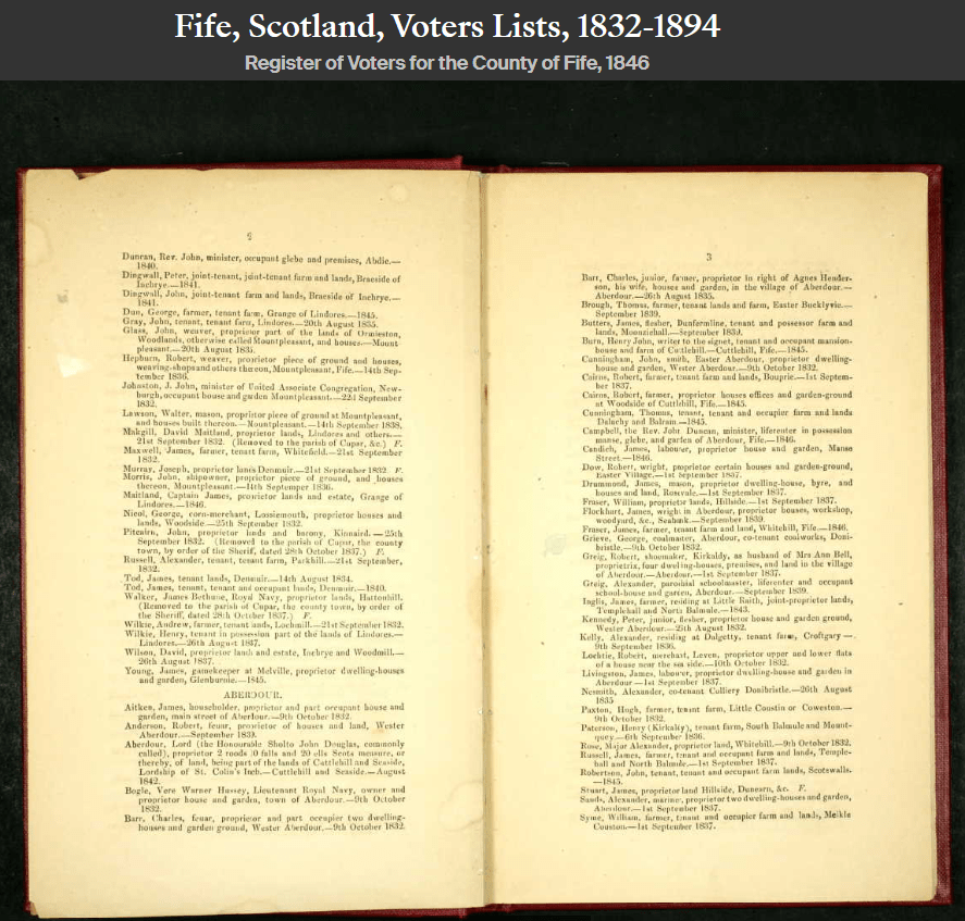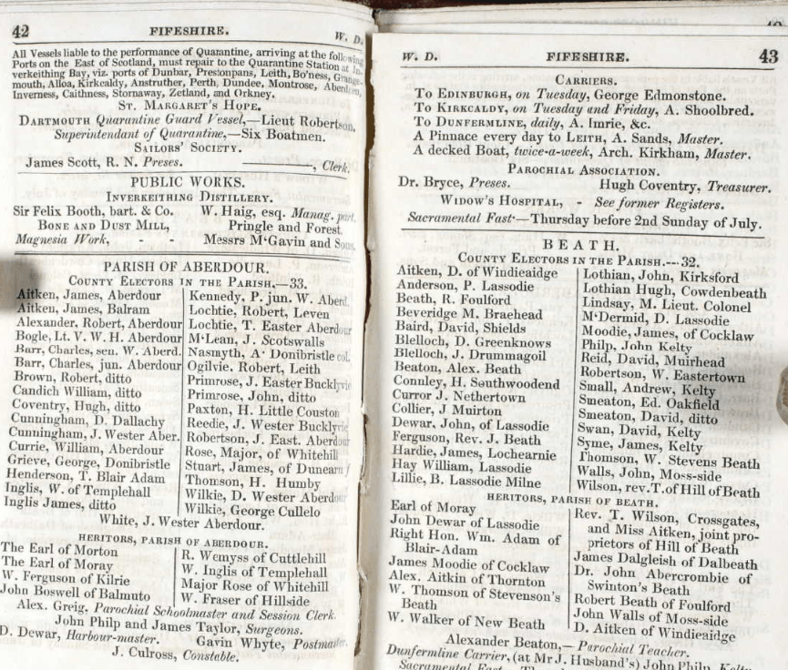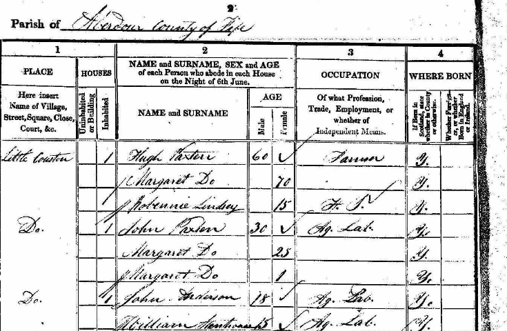 The document below is from 1836 and states Hugh was a county Elector in the Parish of Burntisland. This would mean he was one of a group of men who come together to agree on poor laws, taxes etc within the parish. Hugh was at this point living at Little Couston Farm and is 60 years old.