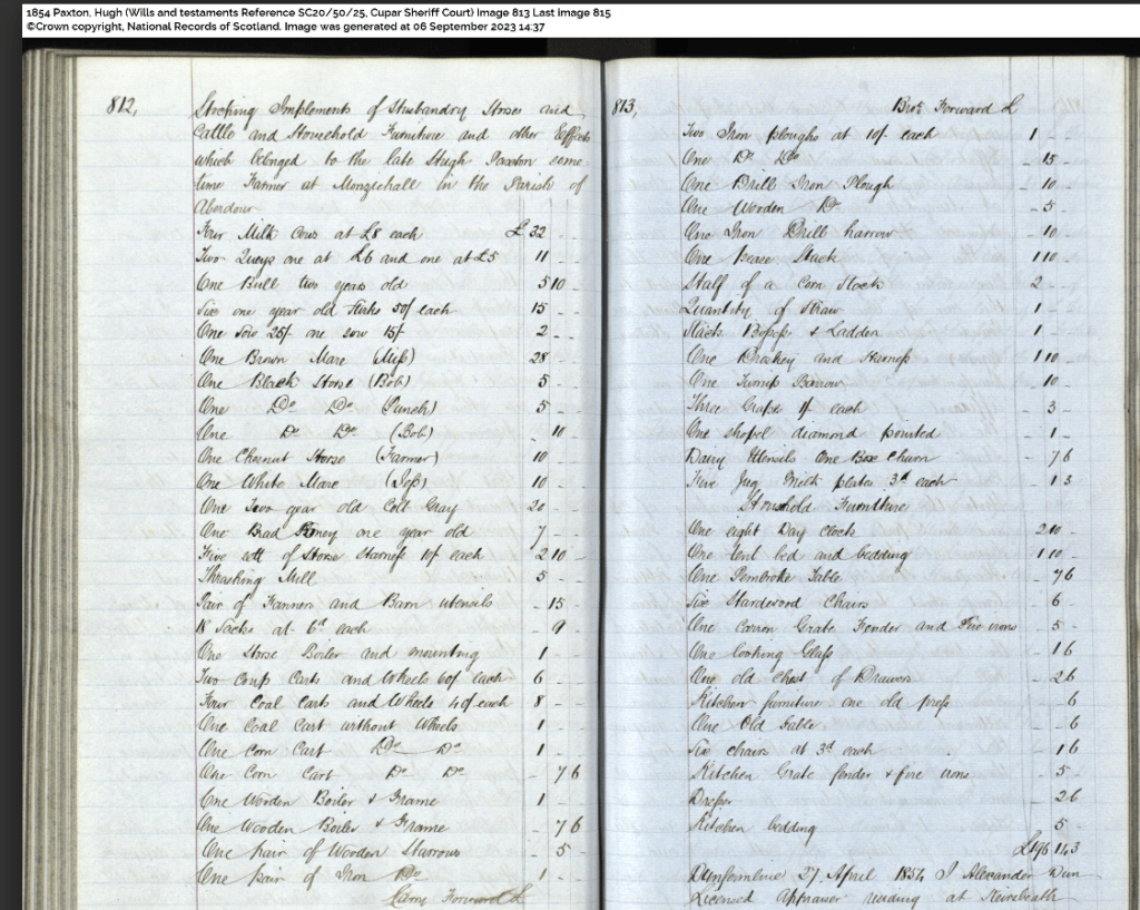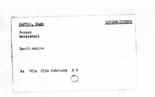 Hugh’s death notice was published in the local newspaper, he was 77 years old. He left his estate to his son John who lived on at Monziehall Farm until his own death.