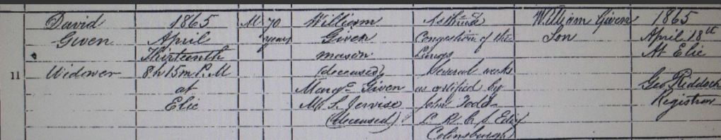 In 1851 David was a Mason Master employing 4 men and still living at Vennel. Numbers had now been added to the census and he was living with his family at no5. He became a Builder Master and like Margaret’s husband Hugh he had the right to vote. David died at 70 years old, his gravestone in Elie Churchyard.