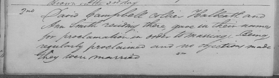 David was born to Alexander Campbell and Alison Skinner in Halbeath, Fife in 1801. He grew up with an older brother Andrew and a younger brother Alexander as well as 2 sisters, Margaret and Sarah.