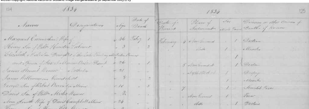 How different life was then, how different marriage was then. Annie gave birth to 3 children. Margaret, my ancestor in 1827, Alexander who followed his fathers footsteps and became a Collier and Catherine. Unfortunately Catherine died of weakness at only 5 weeks old (death record below).