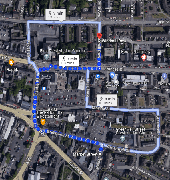 I have no records of Jane before she moved to Scotland. However, I have her sister’s census record which confirms she also lived in Newtownards. Just a few streets away from Windmill Row in 1851
