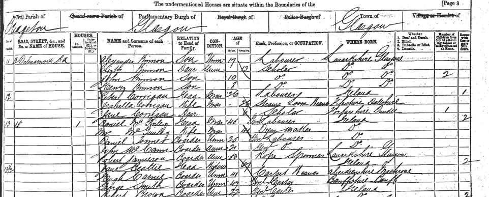 By the 1871 census all Jane’s children had left home and she had boarders living with her. She was still living in Bridgeton, this time on Dalmarnock Road. Dalmarnock was a heavily industrialised area. Fast forward 200 years and it was the location chosen for the athletes’ village when Glasgow hosted the 2014 Commonwealth Games. Therfore many of the buildings are no longer there.