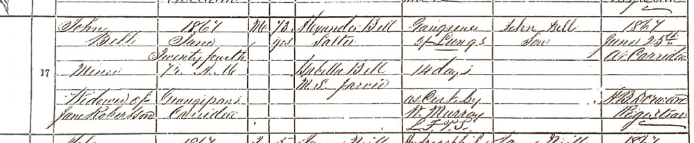 John Bell was born in Grangepans, Carriden to Alexander Bell and Isobel Jervy and baptised in Bo’ness. Records have him as the 3 of 6 children