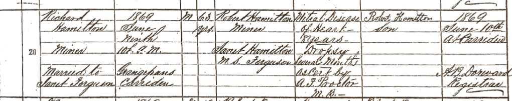 Richard’s parents were Robert Hamilton and Janet Ferguson and he was born in Carriden in the same area, around the same time, as many others in this story. They must have all known one another, worked down the pits together, drank together, laughed and cried together and helped one another …