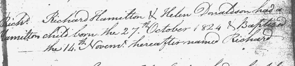 Richard’s first wife was Helen Donaldson, they were married in 1824 had a son named Richard. Helen died shortly afterwards and I have no records of Richard surviving childhood.
