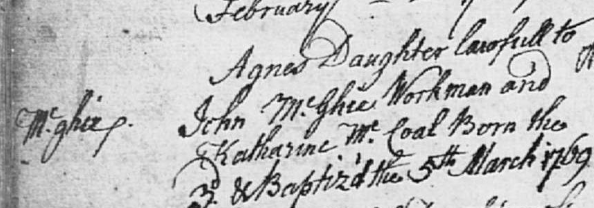 Again I have struggled to find the parental line of McGhie. This, like the line’s above are because a marriage certificate shows maiden name and a link to where they may have originated from and this helps mainly with the maternal line.