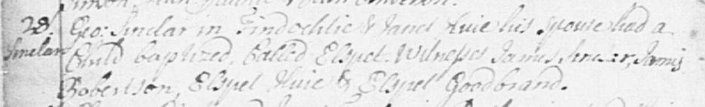 Other than Elspet’s birth the only other information I could find to follow this line was that on the 17th January 1730 Janet Howie, wife to George Sinclair died and that she was buried at Findochty.