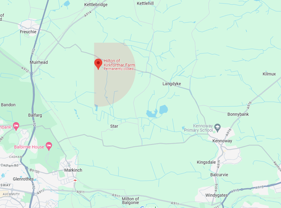 The term indweller on the marriage certificate shows that he was a temporary resident at Hilton of Kirkforthar Farm. Janet lived in Easter Newton, another farm in route to Kennoway (shown on the map)