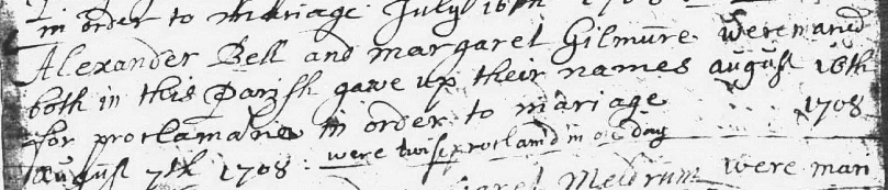 Alexander moved to Bo’ness and married Margaret Gilmure in 1708 in Carriden