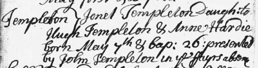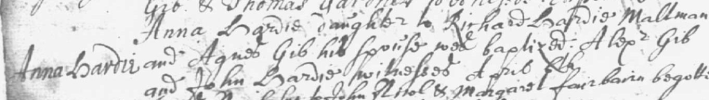 Anna Hardie was Janet Templeton’s mother. She was born on 6th April 1682 in Bo’ness to Richard Hardie and Agnes Gill. Her father was a Maltman. They were married 1705 in Bo’ness, Both of them born in Carriden