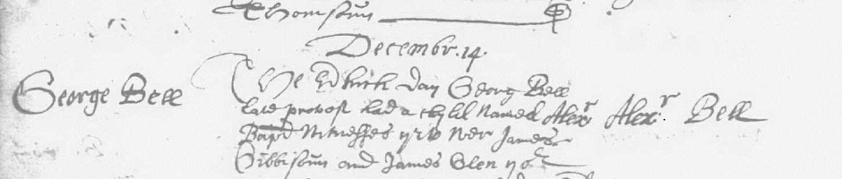 Alexander Bell was baptised on 14th December 1652 in Linlithgow. The last baptised was the 7th December, this shows that children were baptised once a week in 1652.