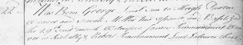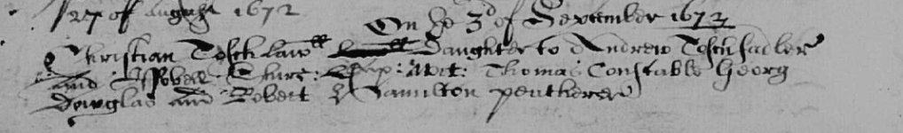 Williame’s parents were Samuel Paistoun and Catherine Fergusone. Unfortunately I can’t decipher the writing to confirm this and so am unable to search any further back.