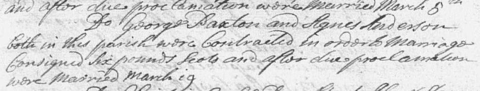 George was in baptised on 27th March 1698 in Abbotshall, his parents were Hew Paxton and Christian Tosh. He married Agnes Anderson in 1725