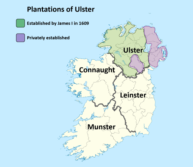 The Plantation of Ulster was established by King James I of England and Ireland in 1609, the plantation was an organised colonisation of the Northern region of Ireland to establish political and economic control. Most of the settlers came from the Scottish Lowlands and Northern England. On 2 March 1613, James I granted a charter to “The Honourable The Irish Society” to undertake the plantation of a new county. This county was named Londonderry, a combination of London and Derry. This charter declared that the “City of Londonderry” and everything contained within the new county: shall be united, consolidated, and from hence-forth for ever be one entire County of itself, distinct and separate from all our Counties whatsoever within our Kingdom of Ireland-and from henceforth for ever be named, accounted and called, the County of Londonderry.